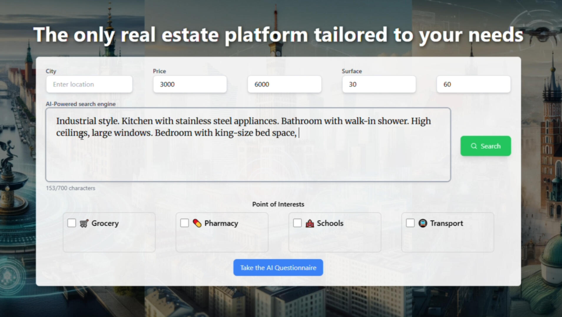 Transforms any user input into a highly detailed apartment search—covering everything from style and layout to nearby amenities.